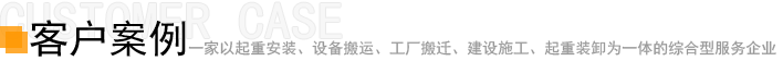 • 公司以往從事過:冷水機(jī)組、發(fā)電機(jī)組、大型空調(diào)、鍋爐、燃?xì)鈾C(jī)、機(jī)床、精密儀器、印刷機(jī)、干洗機(jī)、注塑機(jī)、壓力機(jī)、配電機(jī)組、高層水塔